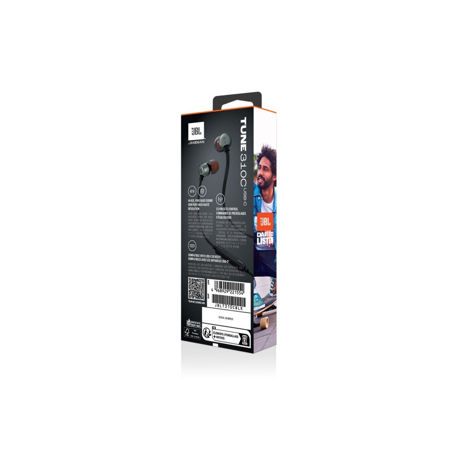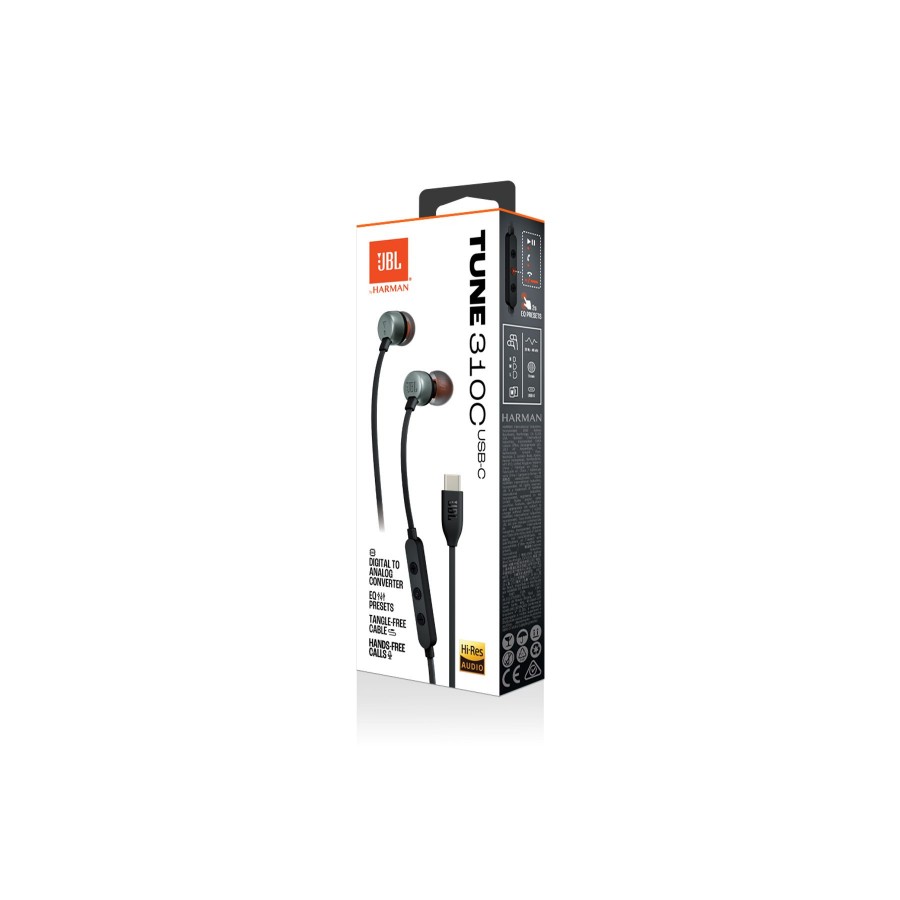 Παρουσιάζουμε τα ακουστικά in-ear JBL Tune 310C USB-C. Είναι ελαφριά, άνετα και compact. Ένα ζευγάρι από 9mm δυναμικούς drivers εκπέμπουν JBL Pure Bass Sound, ενώ η υποστήριξη High Resolution Audio εγγυάται τέλεια ποιότητα ήχου. Η σύνδεση USB-C τα κάνει συμβατά με μια μεγάλη ποικιλία από συσκευές όπως υπολογιστές, και συσκευές gaming. Επιπρόσθετα, τα τρία κουμπιά, τοποθετημένα πάνω σε ένα καλώδιο ειδικά για να αποφευχθούν οι κόμποι, σου επιτρέπουν να ελέγξεις τη μουσική και την ένταση του ήχου, προεπιλογές EQ, καθώς και να απαντάς σε κλήσεις εν κινήσει με το ενσωματωμένο μικρόφωνο. Όλα αυτά κάνουν τα JBL Tune 310C USB-C τον καθημερινό σου σύντροφο, στη δουλειά, το σπίτι ή και στο δρόμο.