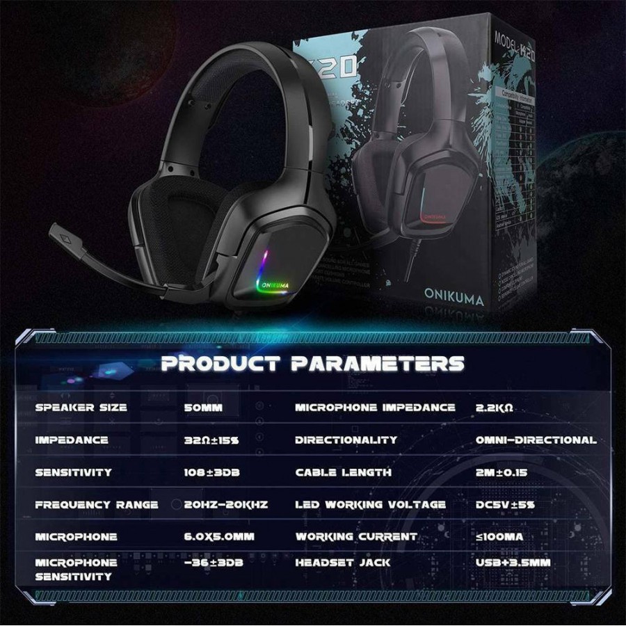Ενσύρματα ακουστικά παιχνιδιών ONIKUMA K20 με μικρόφωνο RGB Ακουστικά για PS4 Xbox One Tablet Laptop/PC Headset Gamer
