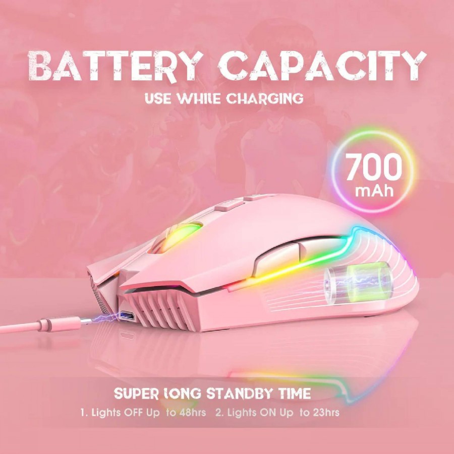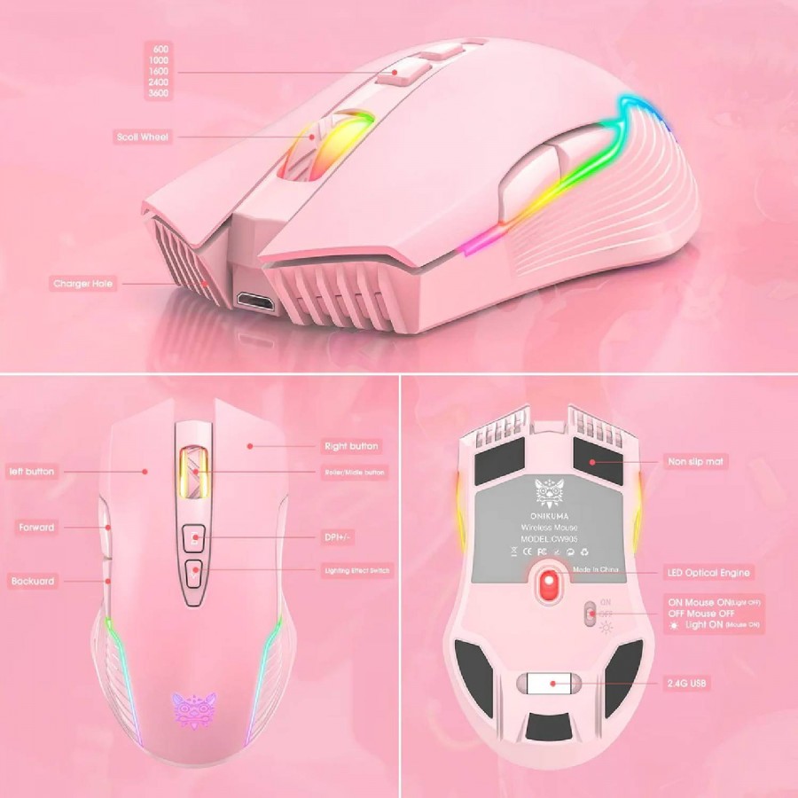 Onikuma CW905 Ασύρματο RGB Gaming Ποντίκι 3600 DPI Ροζ(769)