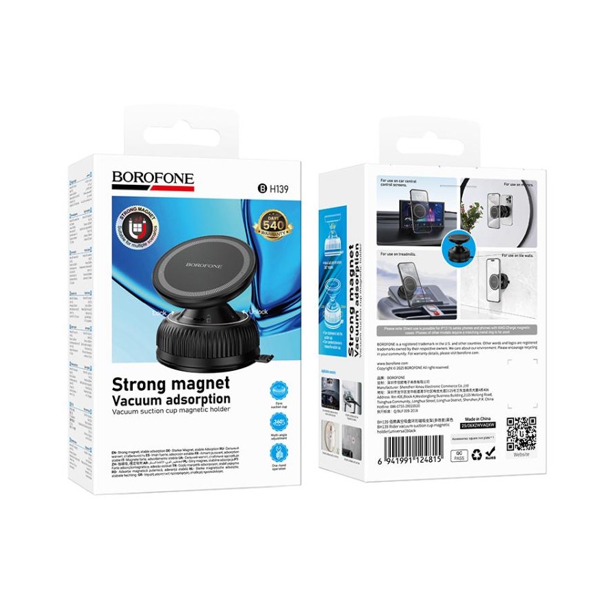 Το Borofone BH139 Rider είναι μια μαγνητική βάση βεντούζας γενικής χρήσης με ισχυρό μαγνήτη για ασφαλές κράτημα. Ιδανικό για αυτοκίνητα, διαδρόμους, τοίχους ή επιτραπέζιους υπολογιστές, προσφέρει περιστροφή 360° για ευέλικτη προβολή. Εύκολη εγκατάσταση και αφαίρεση, σταθερό και αξιόπιστο, συμβατό με τα περισσότερα smartphone και μαγνητικές θήκες.Borofone BH139 Rider is a universal vacuum suction cup magnetic holder with a strong magnet for secure grip. Perfect for cars, treadmills, walls, or desktops, it offers 360° rotation for flexible viewing. Easy to install and remove, stable and reliable, compatible with most smartphones and magnetic cases.