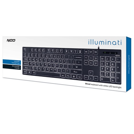 Το NOD Illuminati, είναι ένα full size office πληκτρολόγιο με λευκό LED οπίσθιο φωτισμό και με εξαιρετική εργονομία για άνετη πληκτρολόγηση και απαράμιλλο στυλ στο γραφείο σας. Ο οπίσθιος λευκός φωτισμός των πλήκτρων σας βοηθάει στην πληκτρολόγηση ακόμα και σε συνθήκες χαμηλού φωτισμού, για τα σκοτεινά βράδια που ξεμένετε στο γραφείο μέχρι αργά το απόγευμα .