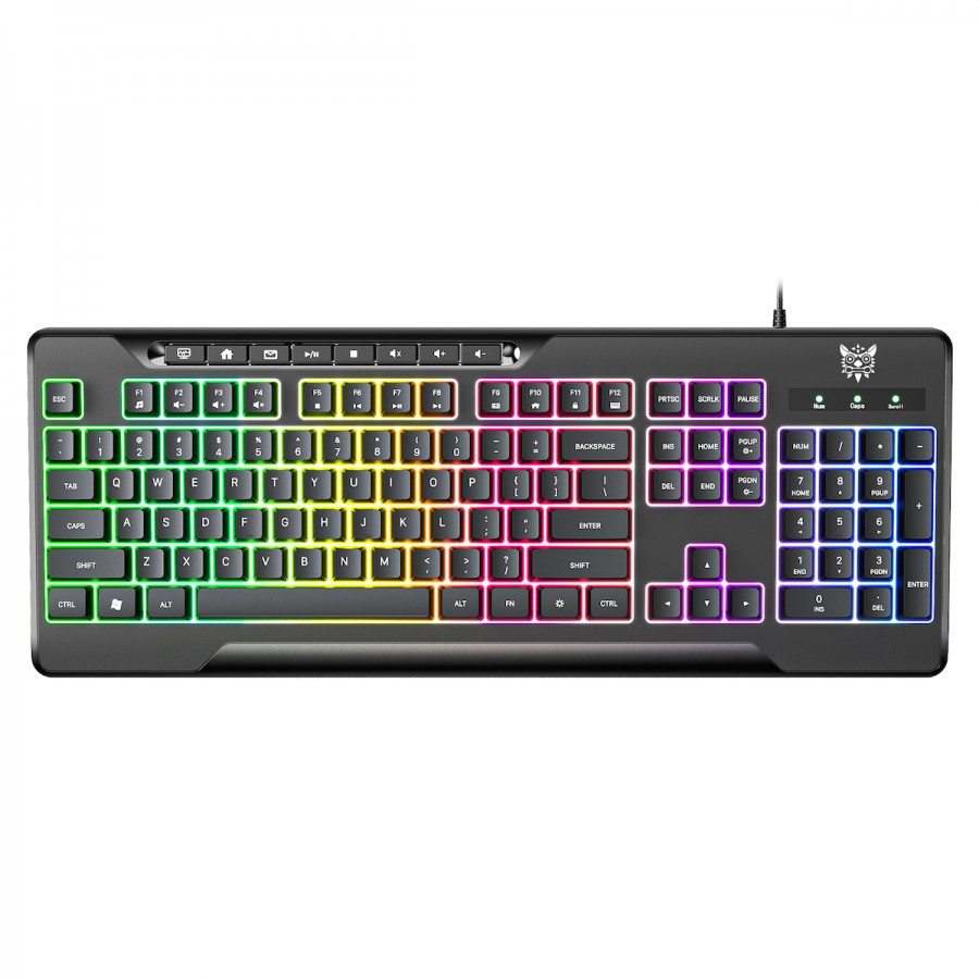Gaming πληκτρολόγιο της εταιρείας Onikuma με RGB φωτιζόμενα πλήκτρα σε γλώσσα αγγλικά US. Χρησιμοποιεί τεχνολογία μεμβράνης, όπως και η πλειοψηφία των συμβατικών πληκτρολογίων της αγοράς. Σε αντίθεση με ένα μηχανικό, το πληκτρολόγιο μεμβράνης είναι αθόρυβο, καθώς δεν έχει ιδιαίτερη αίσθηση κατά την πληκτρολόγηση και είναι συνήθως πιο οικονομικό. Ως full size, διαθέτει όλα τα πλήκτρα ενός τυπικού keyboard μαζί με τα αριθμητικά στο δεξί μέρος του.
