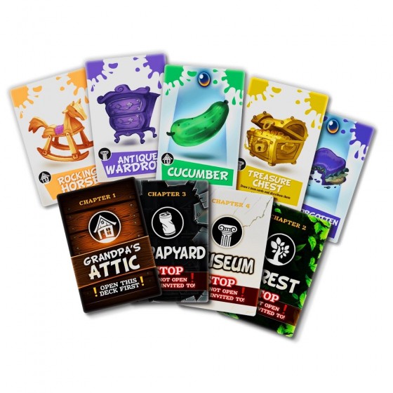 Περιεχόμενα: 6 ταμπλό, 72 μεγάλες κάρτες, 66 κανονικές κάρτες, 41 πλαστικές βάσεις, 43 χάρτινα πιόνια, 1 πύργος από χαρτόνι, 142 δείκτες και πλακίδια, 9 ξύλινοι δίσκοι, 5 ξύλινοι κύβοι, 1 δείκτης θρύλου, 20 εξάπλευρα ζάρια, 1 φυλλάδιο Γρήγορου Ξεκινήματος, κανόνες
