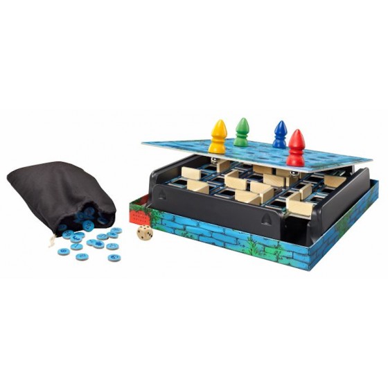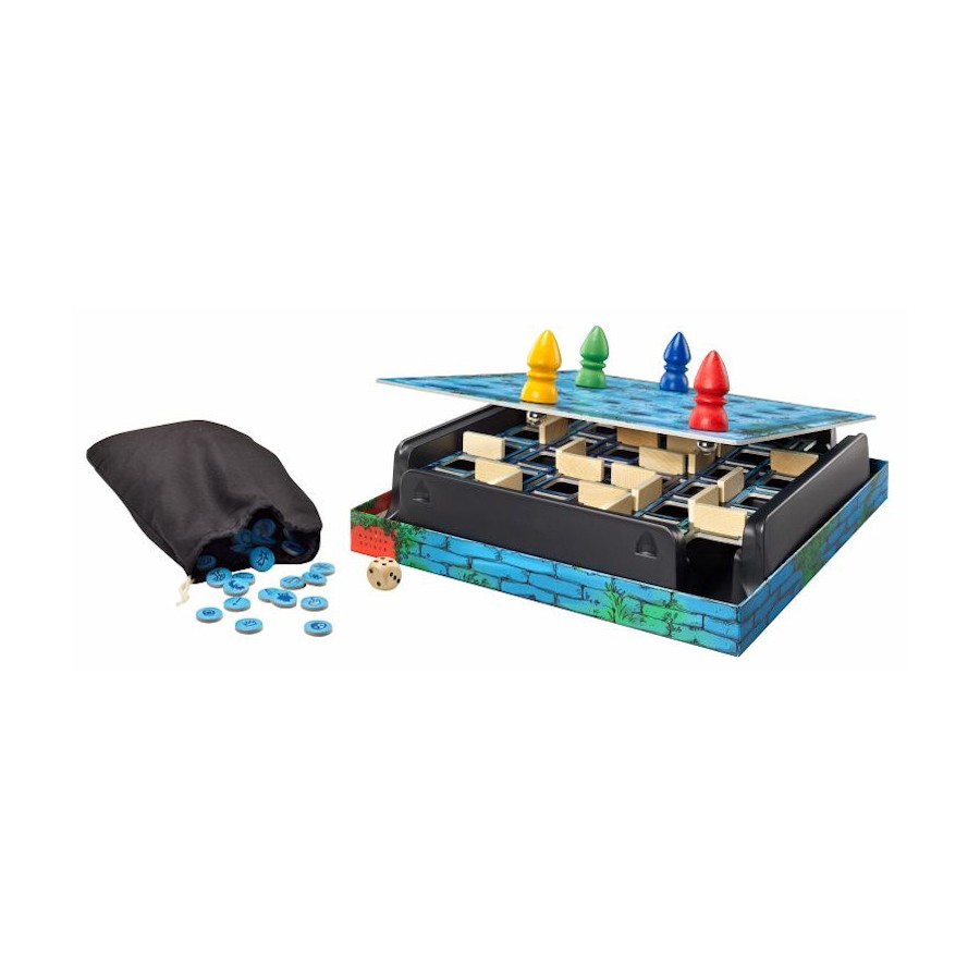 Περιεχόμενα: Ένα ταμπλό (κουτί του παιχνιδιού), 24 ξύλινα κομμάτια τοίχου, 24 μάρκες, 1 σακούλι, 1 ζάρι, 4 μεταλλικές μπάλες, 4 πιόνια, Κανόνες