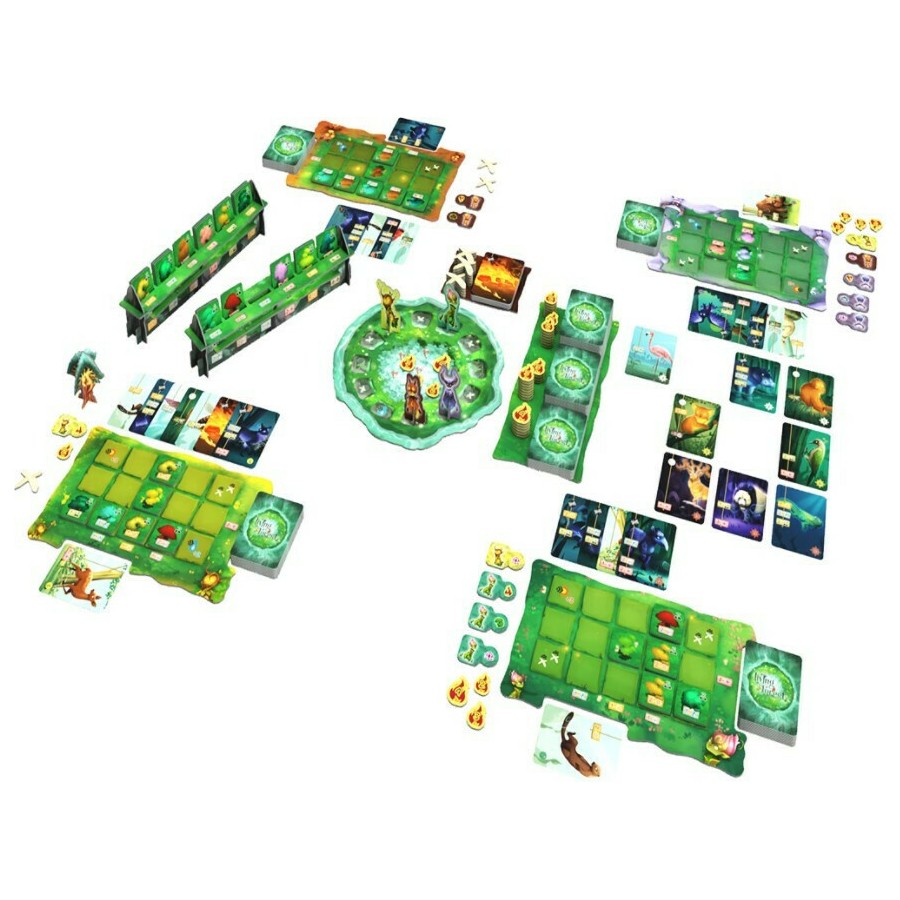 Περιεχόμενα: 1 Βιβλίο Οδηγιών, 7 ταμπλό, 88 κάρτες, 4 φιγούρες Πνευμάτων του Δάσους, 1 φιγούρα Ιερού Δέντρου, 2 συναρμολογούμενοι διανομείς Δέντρων, 133 πλακίδια