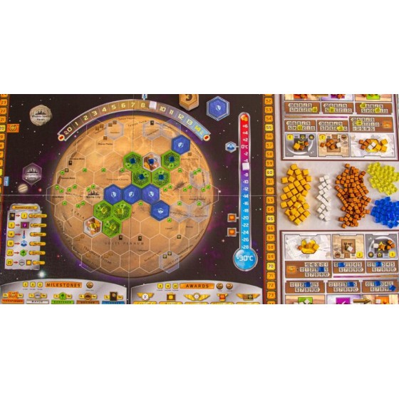 Στο Terraforming Mars ελέγχετε μια επιχείρηση με ένα συγκεκριμένο προφίλ. Παίξτε κάρτες έργων, οργανώστε παραγωγή, τοποθετήστε πόλεις και χώρους πρασίνου στο χάρτη, και ανταγωνιστείτε για ορόσημα και βραβεία!