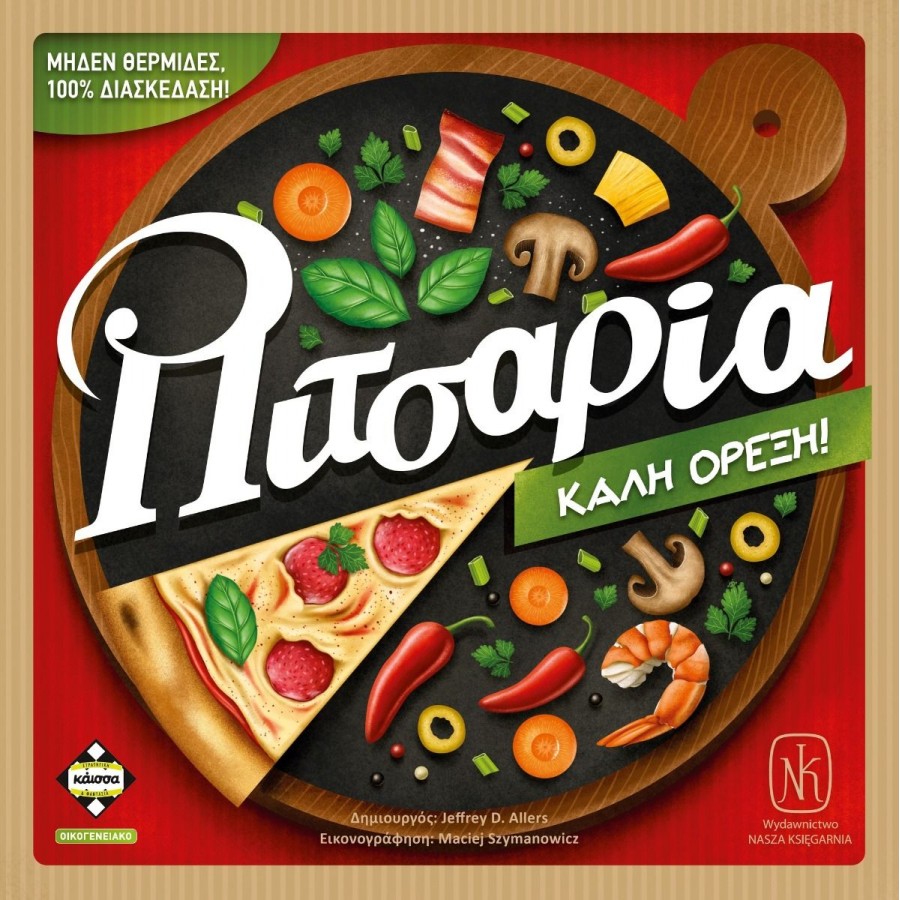 Περιεχόμενα: 70 κομμάτια πίτσας, 1 κόφτης πίτσας, 14 πλακίδια προσφορών, κανόνες