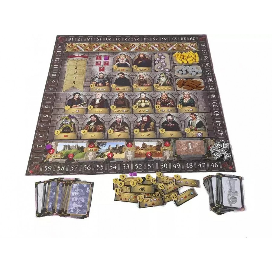 Περιεχόμενα: 1 ταμπλό, 5 φύλλα επαρχιών (διπλής όψεως), 15 ζάρια παικτών, 6 μπόνους ζάρια, 60 δείκτες υλικών, 120 δείκτες κτιρίων, 10 δείκτες κυβερνήτη, 20 δείκτες στρατιωτών, 25 κάρτες εχθρών, 30 δείκτες στρατού του βασιλιά, 24 κάρτες κυβερνήτη