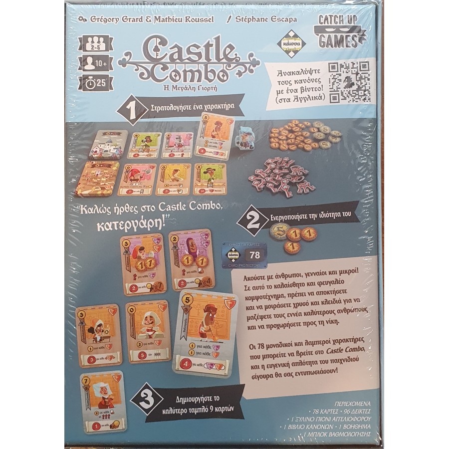 Σε αυτό το έξυπνο παιχνίδι καρτών, πρέπει να αποκτήσετε και να μοιράσετε χρυσό και κλειδιά για να μαζέψετε τους εννέα καλύτερους ανθρώπους και να προχωρήσετε προς τη νίκη. Οι 78 μοναδικοί και λαμπεροί χαρακτήρες που μπορείτε να βρείτε στο Castle Combo, και η ευφυής απλότητα του παιχνιδιού σίγουρα θα σας εντυπωσιάσουν!