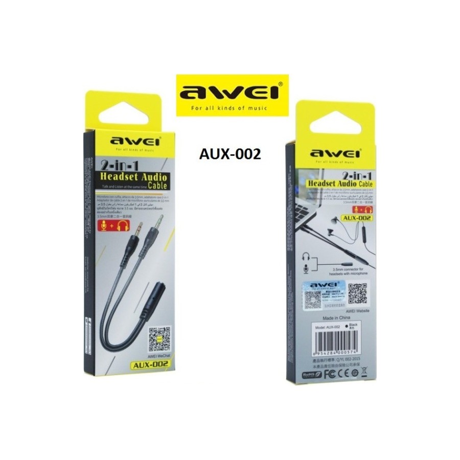 AWEI καλώδιο 3.5mm θηλυκό σε 2x 3.5mm αρσενικό AUX-002, 0.20m, μαύρο