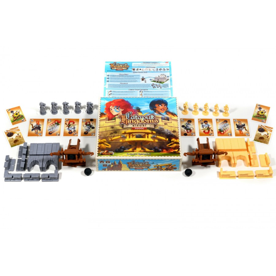 Catapult Kingdoms Siege Expansion includes a new weapon (ballista), new troops, new strategy cards and new bricks so you can create even more impressive castles!