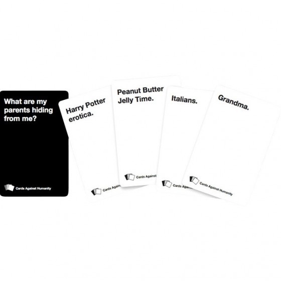 Cards Against Humanity is a party game for horrible people. Each round, one player asks a question from a black card, and everyone else answers with their funniest white card.