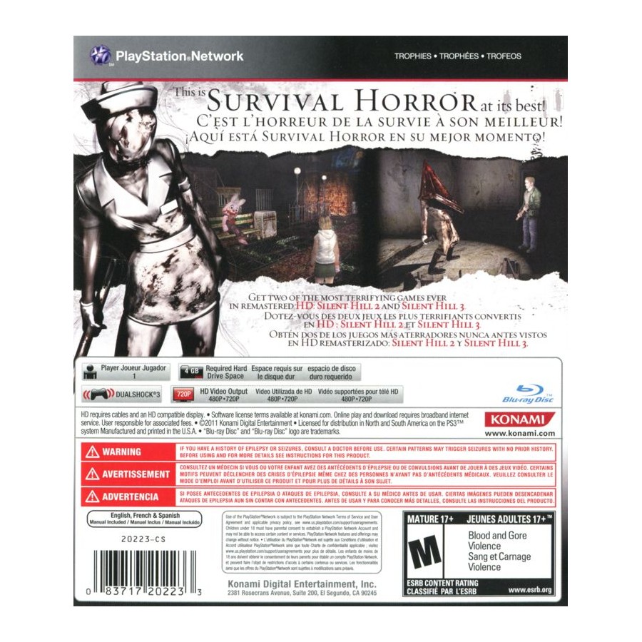 Ζήστε τους δύο κλασικούς τίτλους Silent Hill που κυκλοφόρησαν προηγουμένως στο PlayStation 2, το Silent Hill 2: Restless Dreams & Silent Hill 3, το οποίο καθόρισε το είδος Survival Horror στην αρχή της λειτουργίας του. Και οι δύο τίτλοι επανακαταστάθηκαν σε HD στα 720p για βελτιωμένα γραφικά στο PlayStation 3 Εντελώς Ενημερωμένη φωνητική μετάδοση στο παιχνίδι σε σκηνοθεσία της τραγουδίστριας σειράς Mary Elizabeth McGlynn και του soundtrack