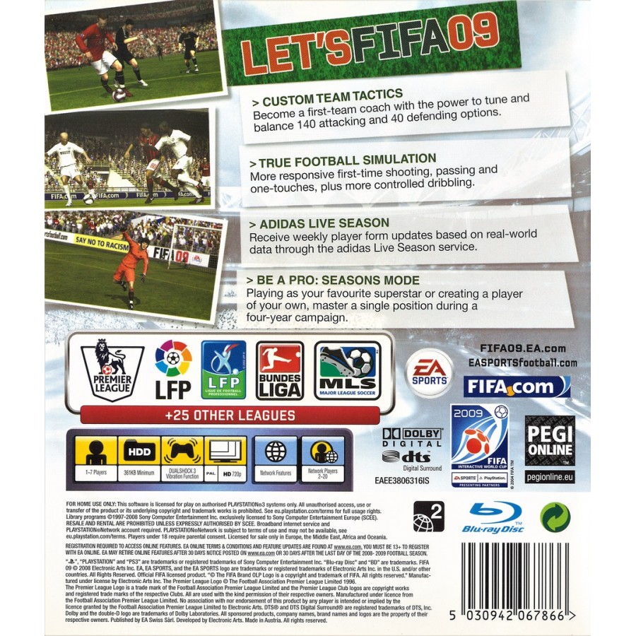 Με την τρίτης γενιάς μηχανή ποδοσφαίρου της EA SPORTS, το FIFA 09 περιέχει περισσότερες από 250 προσθήκες και βελτιώσεις στο gameplay. Αποκτήστε περισσότερο έλεγχο στη μπάλα και ακρίβεια. Το νέο σύστημα φυσικής του παίκτη υπολογίζει την ταχύτητα και το βάρος του, καθορίζει από την απόσταση ενός τάκλιν ως και τη δύναμη μιας κεφαλιάς ανάλογα με το ύψος και το άλμα του παίκτη. Το FIFA 09 περιέχει νέα χαρακτηριστικά Custom Team Tactics παρέχοντας σας όλα τα εργαλεία που χρειάζεστε (11 τακτικές για 140 επιθετικά και 40 αμυντικά συστήματα δηλαδή περισσότεροι από 50000 συνδυασμοί!!!).