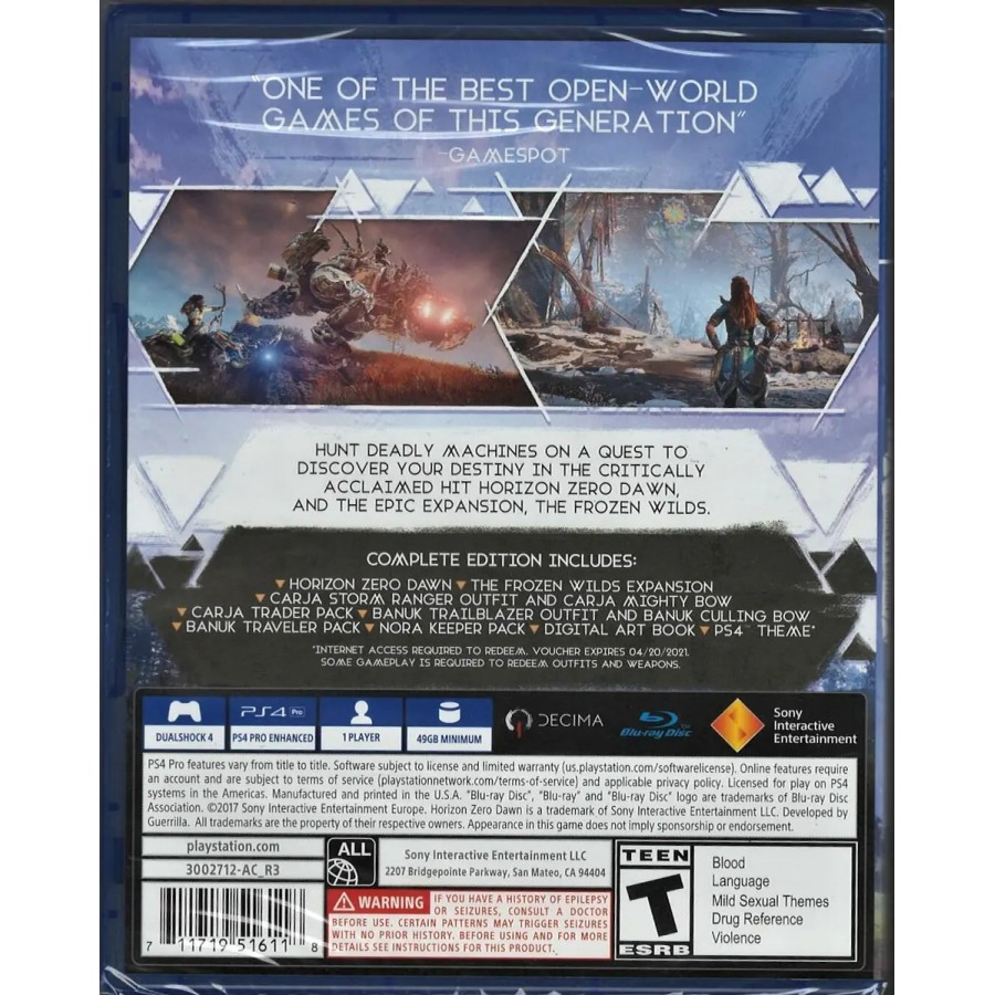 Δημιουργημένο από το στούντιο Guerrilla Games, υπεύθυνο για την επιτυχημένη σειρά Killzone, το Horizon: Zero Dawn είναι μια περιπέτεια σε έναν άγνωστο κόσμο, με στοιχεία παιχνιδιών ρόλων, επιτρέποντάς σου να προσαρμόσεις την Aloy στον τρόπο παιχνιδιού σου κι όχι το αντίστροφο. Σύλλεξε χρήσιμα αντικείμενα από τον κόσμο και δημιούργησε τα όπλα και τον εξοπλισμό σου, για να μπορέσεις να προβάλλεις αντίσταση στα ρομπότ, με τις πιθανότητες εναντίον σου, και να λύσεις το μυστήριο του πολιτισμού που χάθηκε.