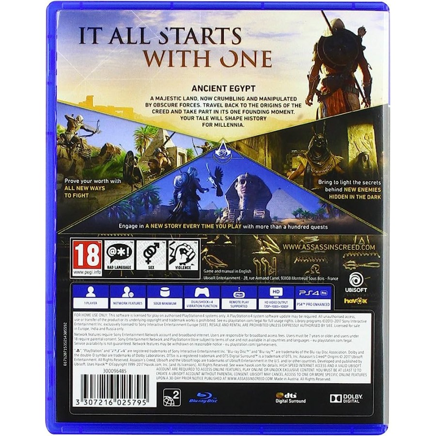 Στην μυστήρια αρχαία Αίγυπτο, κρύβεται η ιστορία της Αδελφότητας. Το Assassin's Creed Origins εξερευνεί την χώρα της Αιγύπτου σε μια από τις πιο κρίσιμες περιόδους της ιστορίας της, και φέρνει τον Bayek, τον πρωταγωνιστή, αντιμέτωπο με κινδύνους και ανακαλύψεις πέρα από κάθε φαντασία, καθώς βιώνει την γέννηση των Ασσασσίνων.