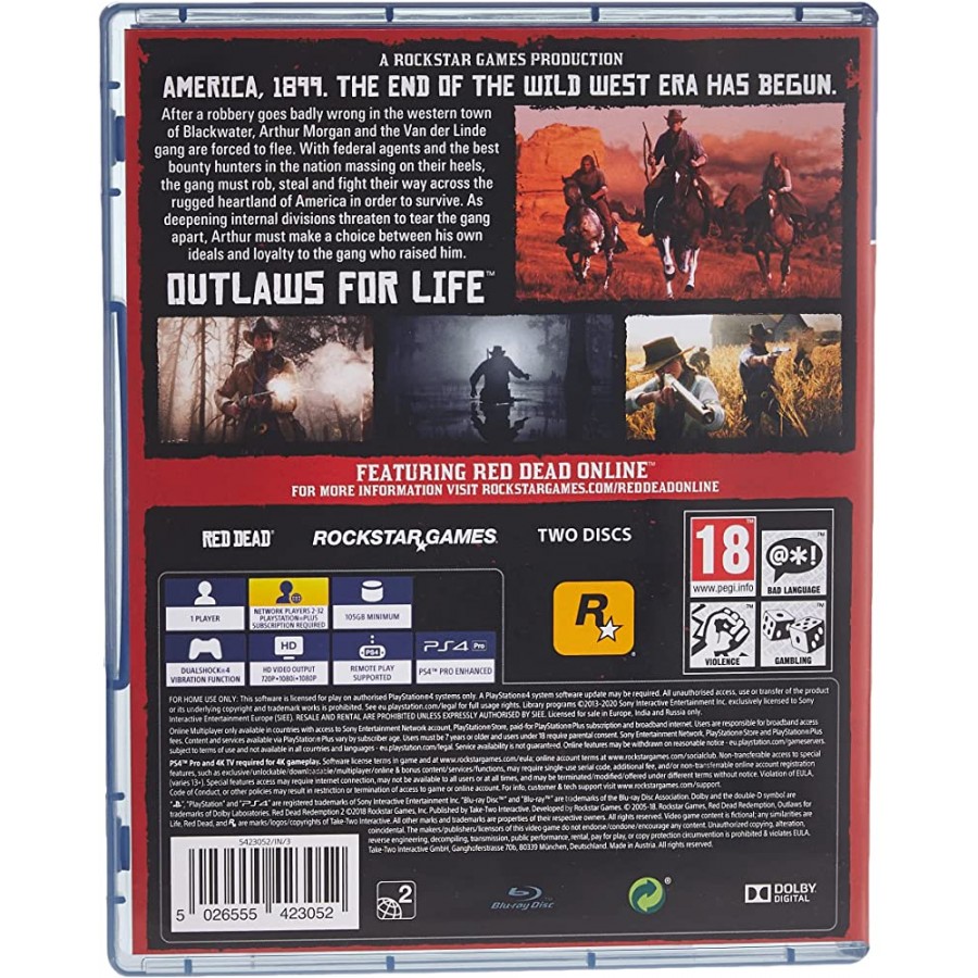 Ζήσε μια αυθεντική western περιπέτεια, σε έναν «ζωντανό», ανοιχτό κόσμο γεμάτο χαρακτήρες που θα σε βοηθήσουν ή θα σταθούν ενάντιά σου, μπόλικα mini games όπως πόκερ, άγριες καταδιώξεις με άμαξες και άλογα και φυσικά, εντυπωσιακή ανταλλαγή πυρών με πιστόλια και τουφέκια εποχής. Ο ίδιος κόσμος αποτελεί την βάση για το ανεπανάληπτο online mode που διαθέτει ο τίτλος, το οποίο σχεδιάστηκε βάσει του άκρως επιτυχημένου και εθιστικού μοντέλου τού Grand Theft Auto Online! Προετοιμάσου για την πιο ατίθαση, γεμάτη μπαρούτι περιπέτεια που ανυπόμονα περίμεναν εκατομμύρια gamers!