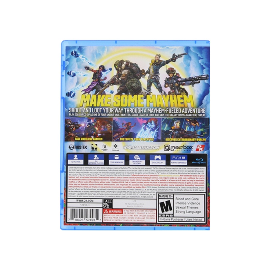 Το αυθεντικό shooter-looter παιχνίδι επέστρεψε φορτωμένο με χιλιάδες όπλα και ένα νέο χαόδης στυλ περιπέτειας. Κάνε την είσοδο σου στους νέους κόσμους του Borderlands 3 ως ένας από τους 4 νέους Vault Hunters, καθένας με μεγάλο ρεπερτόριο skills, abilities και customizations. Παίξε solo ή μαζί με τους φίλους σου και κυνήγησε τους τρελούς εχθρούς σου, μαζεύοντας όλα τα loot boxes που θα βρεις στο δρόμο σου και σώσε το σπίτι σου από τους πιο αδυσώπητους κακούς του γαλαξία. Θα πρέπει να σταματήσεις τους φανατικούς Calypso Twins ώστε να ενώσουν όλες τις φυλές bandits και να καταλάβουν όλο το γαλαξία. Παίξε μόνος σου ή με την παρέα σου επιλέγοντας ανάμεσα στους 4 νέους χαρακτήρες Moze - GUNNER, Amara - SIREN, FL4K - BEASTMASTER και Zane - OPERATIVE. Στόχευσε, όπλισε και loot. Με χιλιάδες όπλα και gadgets, κάθε μάχη θα είναι μια νέα ανακάλυψη. Ότι πιο τρελό όπλο μπορείς να φανταστείς, σε περιμένει να το κάνεις loot. Ανακαλύψε τους νέους κόσμους του Borderland, πέρα από την Pandora, νέες περιοχές σε περιμένουν. Εχθρικές ερήμους, κατεστραμένες πόλεις και θανάσιμοι βάλτοι. Γρήγορο και εύκολο Co-Op gaming. Παίξε με όποιον θες οποιαδήποτε στιγμή είτε σε split-screen co-op είτε σε online mode ασχέτους επιπέδου ή αποστολών. Κατέστρεψε τους αντιπάλους σου και κέρδισε τα δικά σου loot τα οποία δεν μπορεί να κλέψει κανείς από την ομάδα σου.