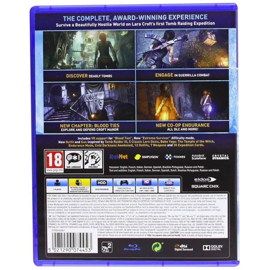 Σε ένα ανοιχτό περιβάλλον, πρέπει να συνδυάσεις αντανακλαστικά, μυαλό και ένστικτο για να επιβιώσεις ενάντια σε κακουχίες, αδυσώπητους εχθρούς αλλά και την ίδια τη φύση. Μπες στον ρόλο της Lara, λύσε γρίφους, γνώρισε απίστευτες περιοχές και γίνε μάρτυρας σε γεγονότα που κόβουν την ανάσα, όλα με εξαιρετική απεικόνιση χάρις στην εξελιγμένη μηχανή γραφικών που χρησιμοποιείται για το παιχνίδι!