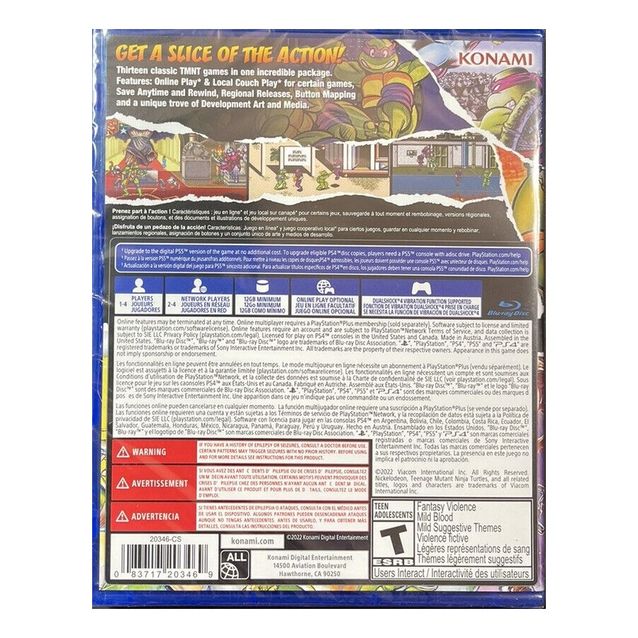 Παίξτε 13 δημοφιλή και επιδραστικά παιχνίδια TMNT σε μια πρωτοποριακή συλλογή από την Konami! Βασισμένα στους χαρακτήρες και στα θέματα της παιδικής σειράς κινουμένων σχεδίων και των αντίστοιχων κόμικ από τη δεκαετία του '80, τα παιχνίδια Teenage Mutant Ninja Turtles εκτυλίσσονται συχνά σε μια φανταστική εκδοχή της Νέας Υόρκης, μέσα στις αποχετεύσεις, σε φουτουριστικά εχθρικά κρησφύγετα, ακόμα και σε ταξίδια στον χρόνο!