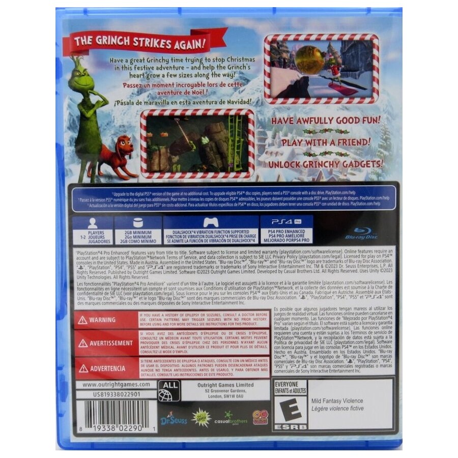 Ανακαλύψτε μια κλασική περιπέτεια με οπτικά εφέ εμπνευσμένα από το βιβλίο του Dr. Seuss και ελέγχους για μικρούς παίκτες. Με πολύχρωμα γραφικά που αναδεικνύουν τις αρχικές εικονογραφήσεις του Dr. Seuss, διασκεδαστικά τοπικά multiplayer για έως δύο παίκτες που ελέγχουν τον Γκριντς και τον Μαξ, καθώς και γρίφους σχεδιασμένους για νεότερους παίκτες, οι περιπέτειες του Γκριντς: Χριστουγεννιάτικες περιπέτειες είναι ένας διασκεδαστικός νέος τρόπος να απολαύσετε την κλασική χριστουγεννιάτικη ιστορία.