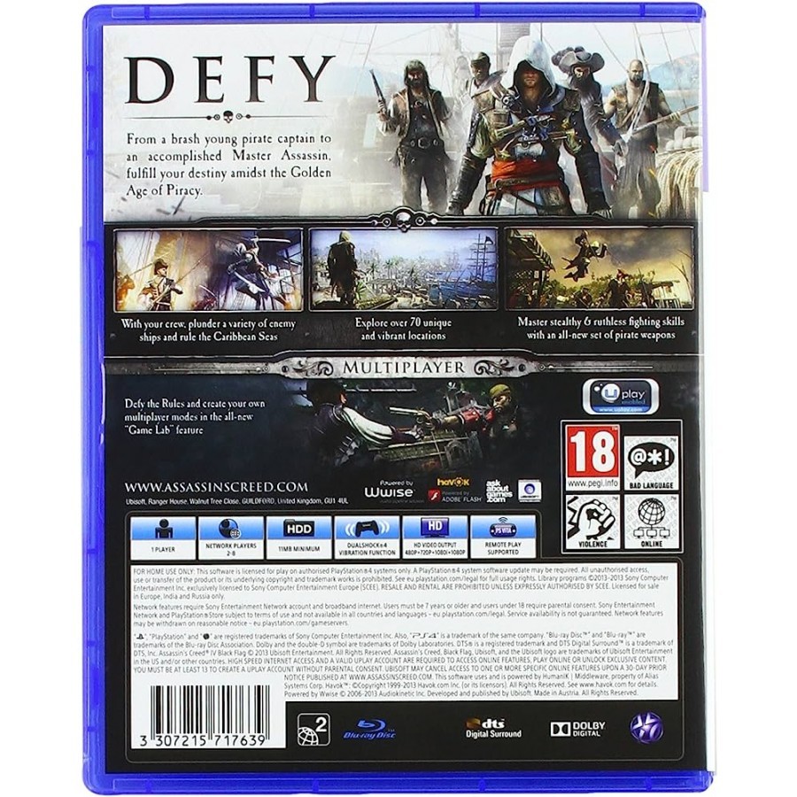 Παίξε το ρόλο του Edward Kenway, ενός ασταμάτητου πειρατή του 18ου αιώνα που σέβεται μόνο το νόμο του σπαθιού. Αυτή η συμπεριφορά θα τον φέρει αντιμέτωπο με ένα μέλος του Τάγματος των Ασασίνων και θα τον παρασύρει στο επίκεντρο μιας σύγκρουσης που θα αλλάξει τον τρόπο που αντιλαμβάνεται τον κόσμο.
