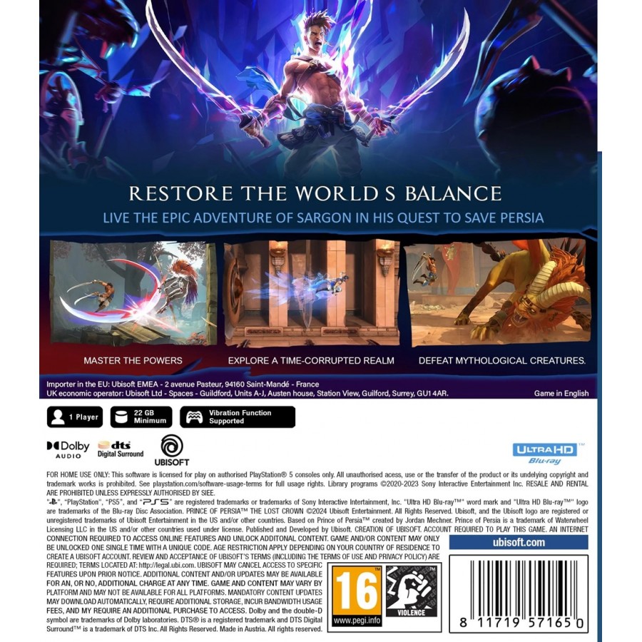 Μπες σε ένα κομψό και συναρπαστικό action-adventure platformer σε έναν μυθολογικό περσικό κόσμο όπου τα όρια του χρόνου και του χώρου είναι δικά σου για να τα χειριστείς.