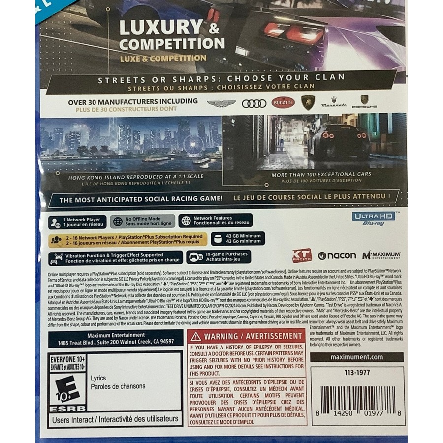 Στο νησί του Χονγκ Κονγκ, όπου τα όνειρα γίνονται πραγματικότητα, η Radiant έχει δημιουργήσει νέα πρότυπα πολυτέλειας. Αυτή η ελάχιστα γνωστή αλλά με μεγάλη επιρροή οργάνωση έχει προσκαλέσει τα μέλη της να διαγωνιστούν σε έναν εξαιρετικό διαγωνισμό: τον Solar Crown. Λίγοι γνωρίζουν ποια είναι τα κίνητρα της ομάδας, αλλά είναι σαφές τι ψάχνουν : κύρος, αγάπη για τα αυτοκίνητα και ανταγωνισμόςΣτο Test Drive Unlimited Solar Crown, μπορείτε να ζήσετε έναν μοναδικό τρόπο ζωής που δεν έχετε ξαναδεί σε βιντεοπαιχνίδι!Αυτό το ολοκαίνουργιο παιχνίδι της σειράς Test Drive Unlimited διατηρεί το DNA των προηγούμενων παιχνιδιών, ενώ εισάγει ένα νέο στοιχεία για το είδος των αγώνων για πολλούς παίκτες.
