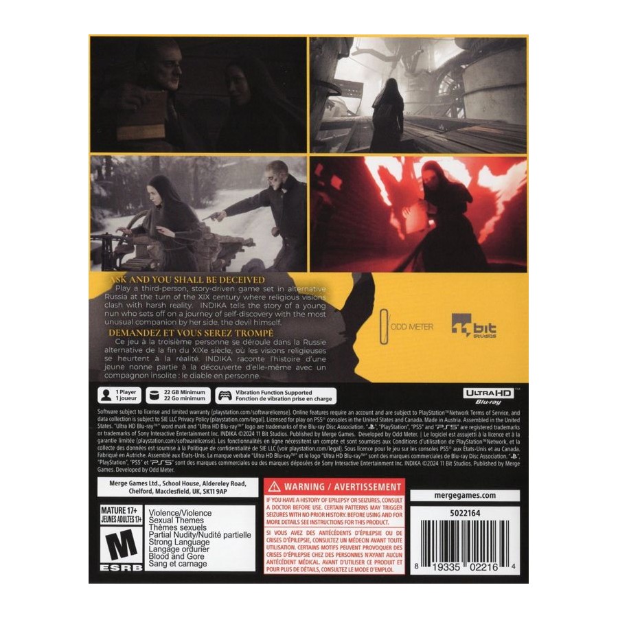 Παίξτε ένα παιχνίδι τρίτου προσώπου, με πλοκή που διαδραματίζεται στην εναλλακτική Ρωσία στις αρχές του XIX αιώνα, όπου τα θρησκευτικά οράματα συγκρούονται με τη σκληρή πραγματικότητα. Το INDIKA αφηγείται την ιστορία μιας νεαρής καλόγριας που ξεκινάει ένα ταξίδι αυτογνωσίας με την τον πιο ασυνήθιστο σύντροφο στο πλευρό της, τον ίδιο τον διάβολο.