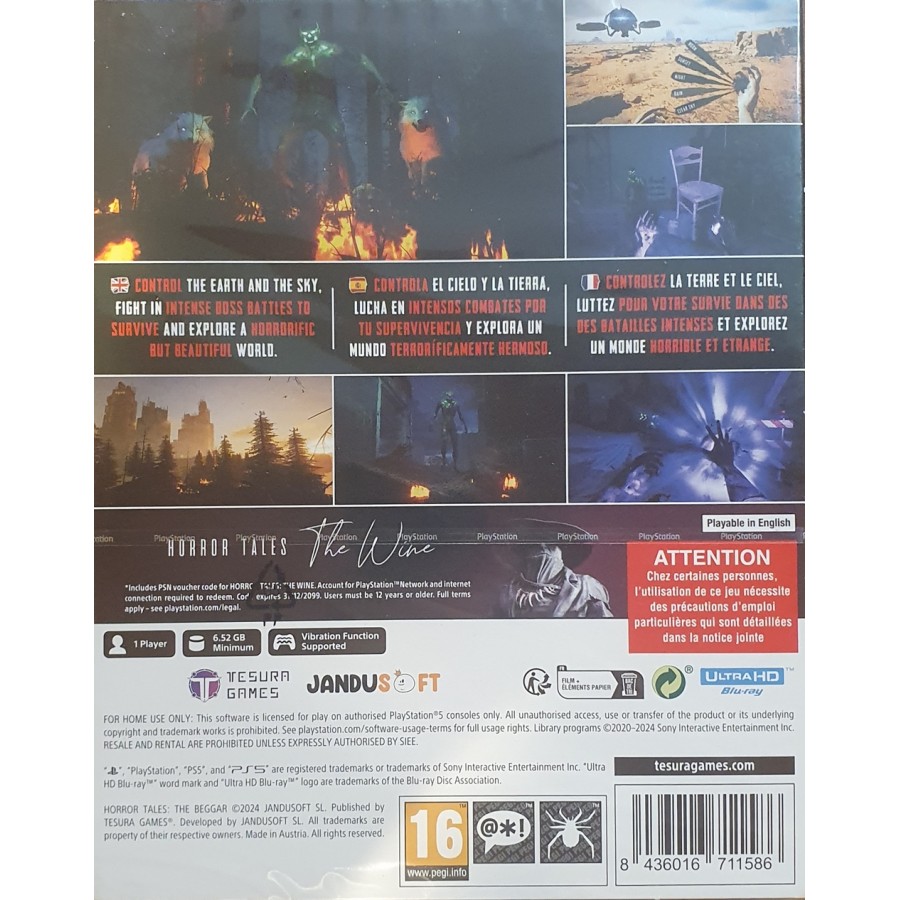 Μπείτε στο Horror Tales: The Beggar (συνέχεια του Horror Tales: The Wine) ένα καθηλωτικό ταξίδι επιστημονικής φαντασίας που εκτυλίσσεται στον απόηχο ενός καταστροφικού γεγονότος, όπου ο τρόμος και η επιστημονική φαντασία διαπλέκονται ανάμεσα στα ερείπια ενός κατεστραμμένου κόσμου.