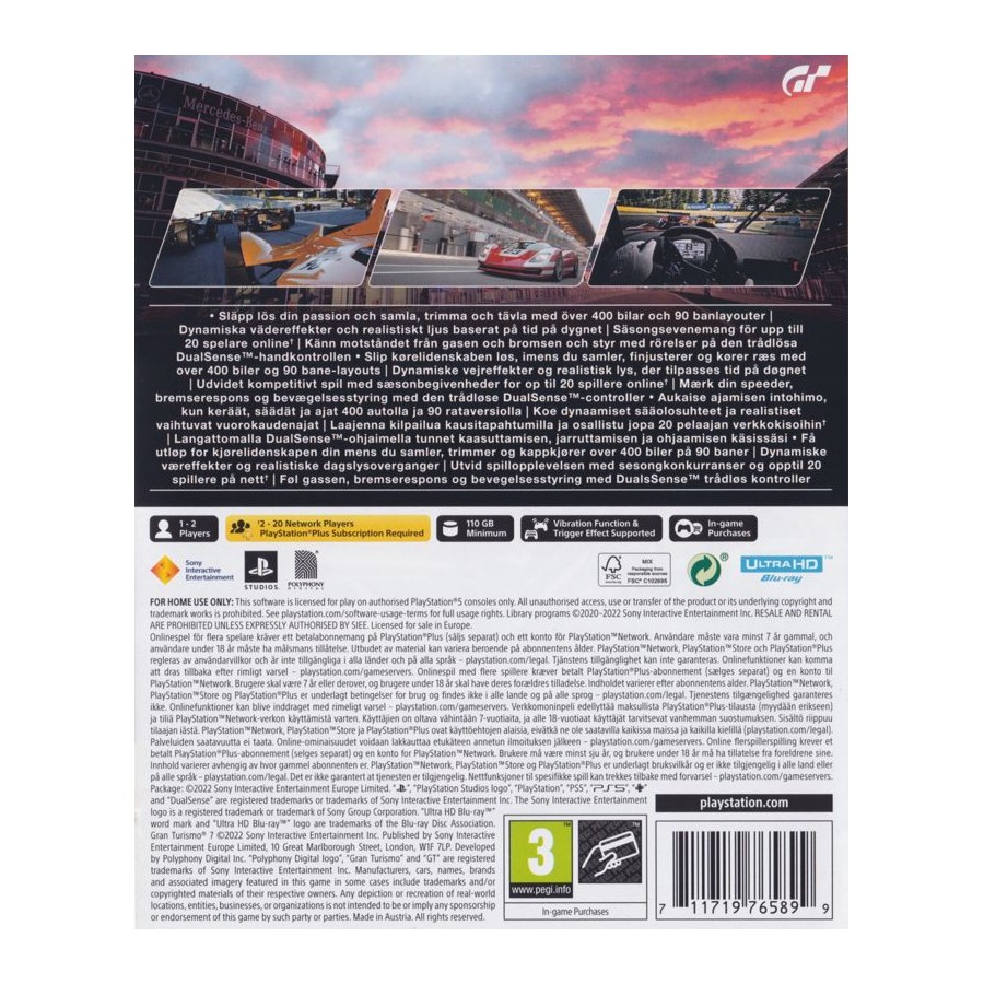 Το Gran Turismo, βασισμένο στα 25 χρόνια εμπειρίας ως ένα επιτυχημένο racing franchise, επιστρέφει δυναμικά με το Gran Turismo 7 φέρνοντας μαζί του τα καλύτερα χαρακτηριστικά του Real Driving Simulator. Με πάνω από 420 αυτοκίνητα διαθέσιμα από την πρώτη μέρα στα Brand Central και Used Car Dealership, το Gran Turismo 7 επαναπροσδιορίζει την εικόνα και την αίσθηση τόσο των κλασσικών μοντέλων, όσο και των supercar, με αξεπέραστη λεπτομέρεια. Κάθε αυτοκίνητο έχει διαφορετική συμπεριφορά και μοναδική αίσθηση, καθώς οδηγείτε στις πάνω από 90 πίστες, μεταξύ αυτών και σε κλασσικές από την ιστορία του GT, σε δυναμικές καιρικές συνθήκες.
