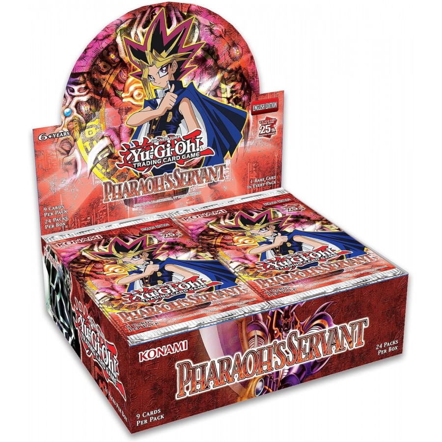 To Pharaoh's Servant ήταν το τέταρτο booster που κυκλοφόρησε ποτε! Για χρόνια, μπορούσατε να πάρετε στα χέρια σας αυτά τα πολυπόθητα πακέτα ως μέρος της Legendary Collection, αλλά τώρα, ακριβώς στην ώρα για τον εορτασμό της 25ης επετείου του παιχνιδιού καρτών, διατίθενται ως αυτόνομα ενισχυτικά πακέτα! Το πλήρες Pharaoh's Servant booster περιέχει 105 κάρτες: 66 Commons, 17 Rares, 10 Super Rares, 10 Ultra Rares, 2 Secret Rares.H κούτα έχει 24 φακελάκια.