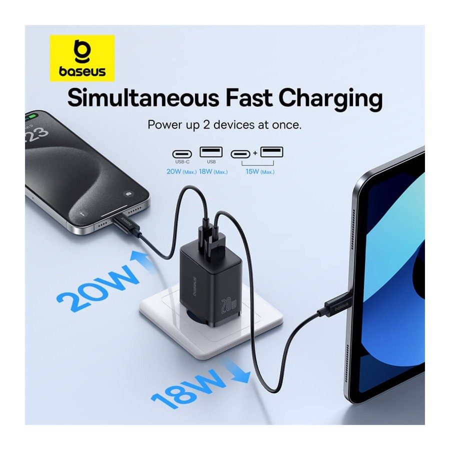 Ο γρήγορος φορτιστής Baseus Cube προσφέρει ταχύτητες φόρτισης έως και τρεις φορές πιο γρήγορες από τους κανονικούς φορτιστές. Με θύρες USB-C και USB-A, μπορείτε να φορτίζετε δύο συσκευές ταυτόχρονα με υψηλή ταχύτητα. Είναι εξαιρετικά μικρός και συμπαγής, γεγονός που τον καθιστά έναν εξαιρετικό σύντροφο ταξιδιού. Ξεχάστε την υπερθέρμανση με τον γρήγορο φορτιστή Baseus Cube C+U 20W EU. Χρησιμοποιεί προηγμένη τεχνολογία ψύξης για να διατηρεί τόσο τον φορτιστή όσο και τις συσκευές σας δροσερές κατά τη φόρτιση. Τώρα μπορείτε να απολαύσετε αποτελεσματική φόρτιση με την τεχνολογία (GaN) . Μπορεί να φορτίσει το iPhone 15 σας από 0 έως 59% σε μόλις 30 λεπτά. Με έξι επίπεδα προστασίας, διασφαλίζει ότι οι συσκευές σας είναι πάντα ασφαλείς κατά τη φόρτιση.