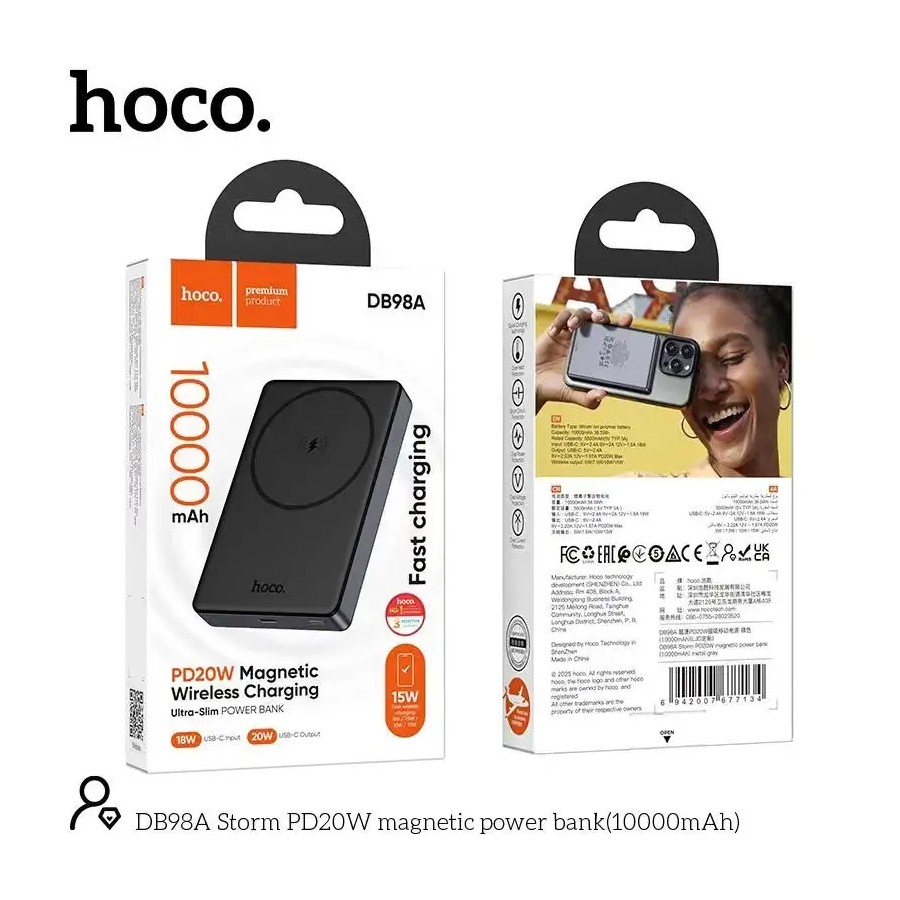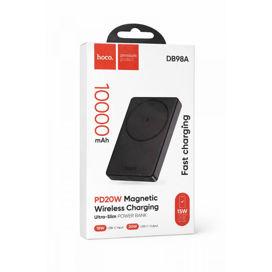 Hoco DB98A MagSafe Power Bank 10000mAh 20W με Θύρα USB-A και Θύρα USB-C Μαύρο