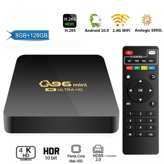 TV Box Q96 Mini 4K UHD με WiFi USB 2.0 8GB RAM και 128GB Αποθηκευτικό Χώρο με Λειτουργικό Android 10.0