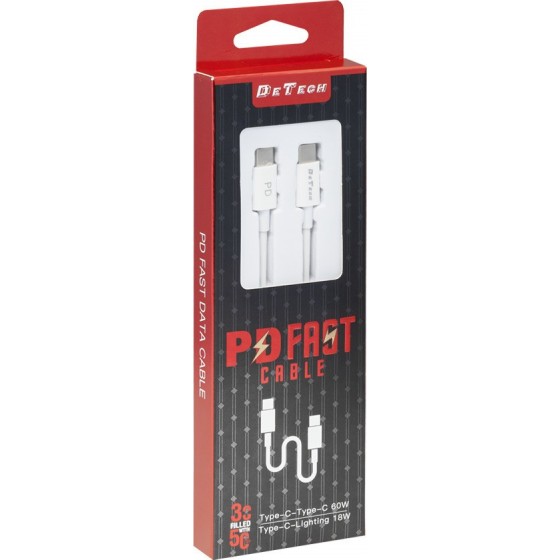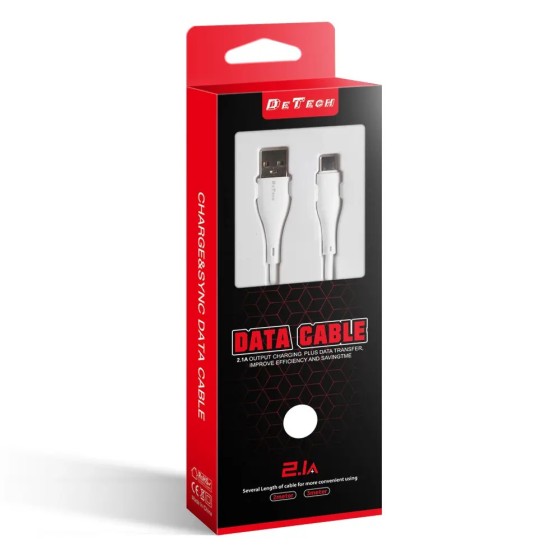 Kαλώδιο δεδομένων DeTech DE-C27C, Type-C, 1.0m, λευκό - 40111