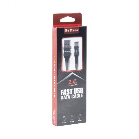 De Tech DE-C38C Braided / Regular USB 2.0 Cable USB-C male - USB-A male Μαύρο 1m
