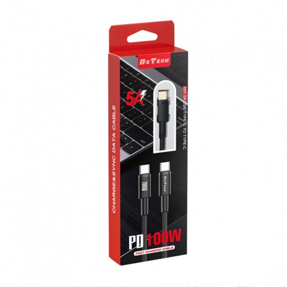 Kαλώδιο DeTech, Type-C - Type-C, 100W, 4K, 20GB/s, PD, 1.0m, Μαυρο