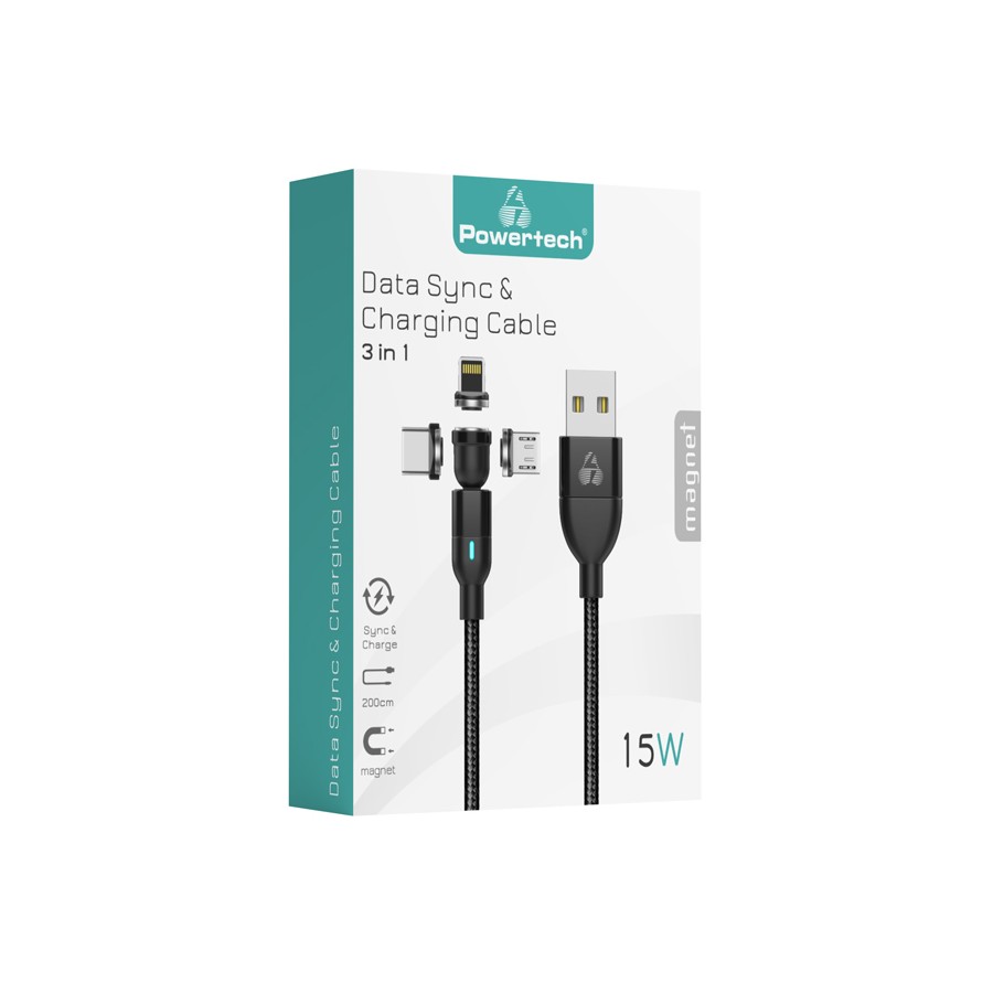POWERTECH καλώδιο USB σε 3in1 magnet PTR-0103, μαγνητικό, 15W, 2m, μαύρο