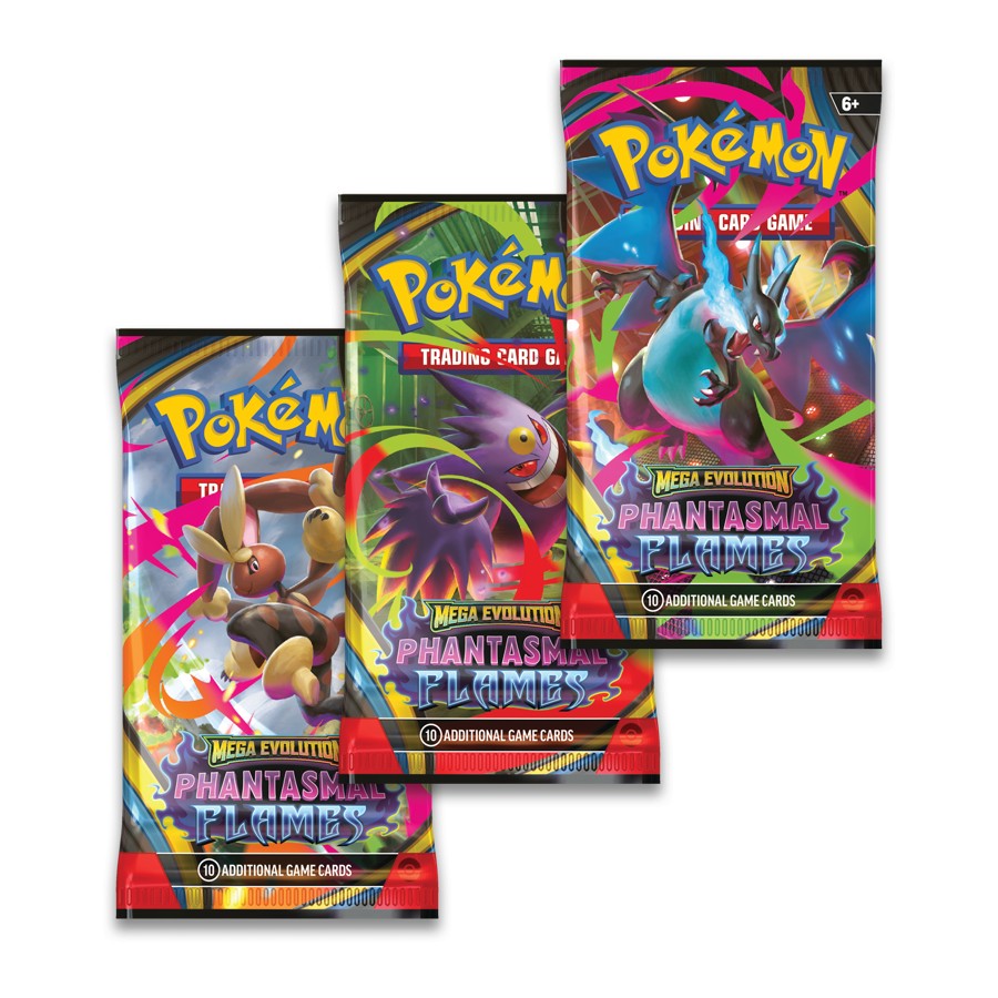 Θα βρείτε επίσης 3 booster packs από το Pokémon TCG: Mega Evolution—Phantasmal Flames. (Κάθε booster pack περιέχει 10 κάρτες παιχνιδιού, 1 Basic Energy και 1 κάρτα κωδικού Pokémon TCG Live. Οι κάρτες διαφέρουν ανά πακέτο.)