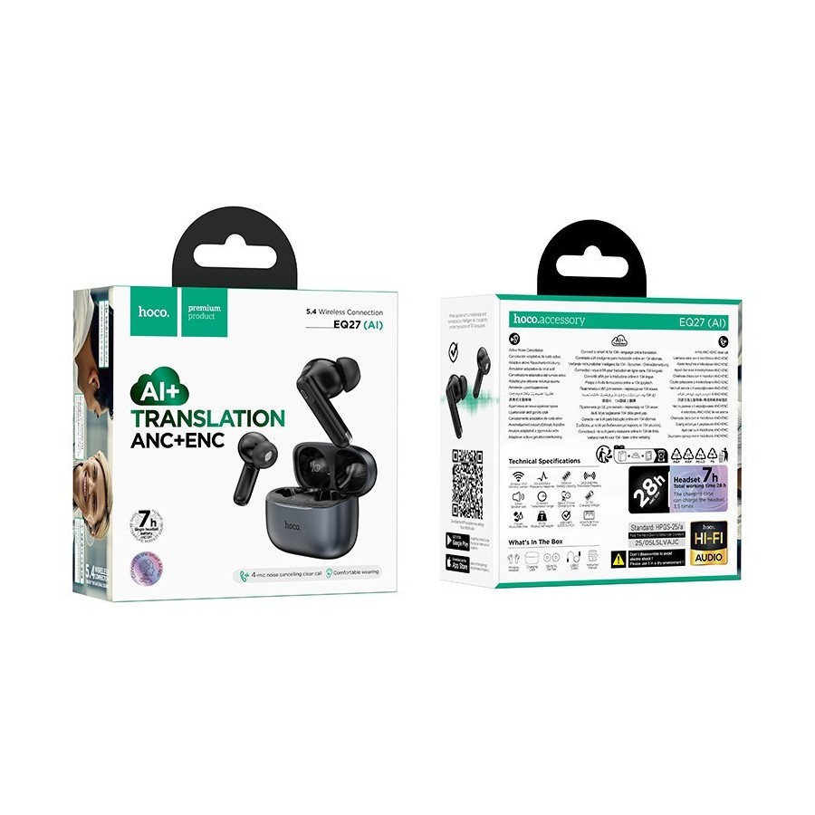 Hoco EQ27 ANC+ENC Bluetooth Earphones με Έξυπνο Μεταφραστή AI Μαύρο Μαύρα