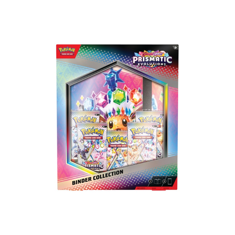 Η συλλογή Pokemon TCG: Scarlet & Violet- Prismatic Evolutions Binder περιλαμβάνει: Ένα βιβλιοδέτη με 21 σελίδες με 9 τσέπες και 5 πακέτα ενίσχυσης Pokemon TCG: Scarlet & Violet- Prismatic Evolutions.