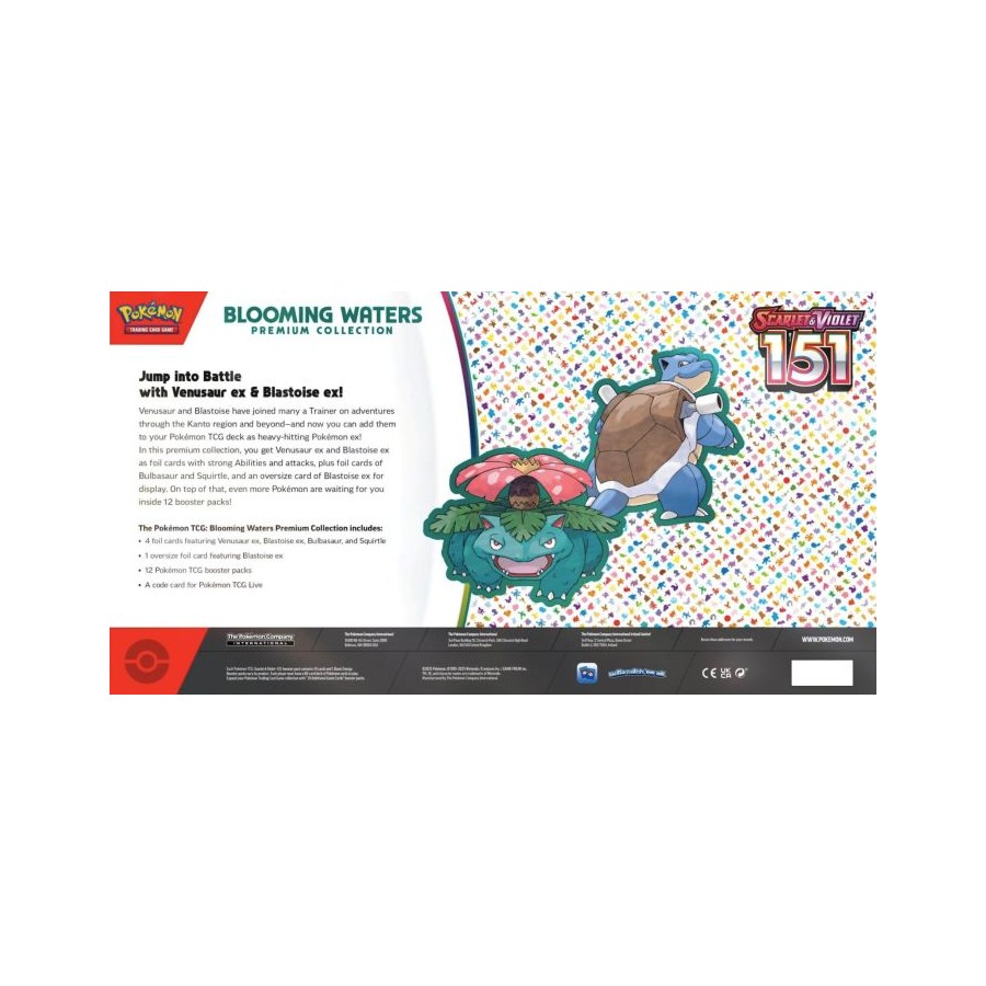 Jump into Battle with Venusaur ex & Blastoise ex! Venusaur and Blastoise have joined many a Trainer on adventures through the Kanto region and beyond—and now you can add them to your Pokémon TCG deck as heavy-hitting Pokémon ex! In this premium collection, you get Venusaur ex and Blastoise ex as foil cards with strong Abilities and attacks, plus foil cards of Bulbasaur and Squirtle, and an oversize card of Blastoise ex for display. On top of that, even more Pokémon are waiting for you inside 12 booster packs!