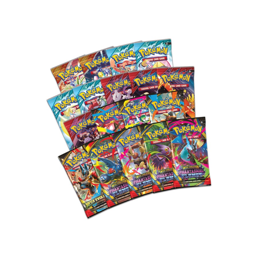 Ignite a Raging Inferno with Mega Charizard X ex! The immense power of Mega Evolution has brought forth the flickering blue flames of Mega Charizard X ex! This ferocious Mega Evolution Pokémon ex burns up Fire Energy to fuel its Inferno X attack, doing more damage for each card you discard. You’ll find Mega Charizard X ex here as a foil promo card, along with another foil promo card featuring Oricorio ex to help get more Fire Energy into play. Even more Pokémon await inside a stack of booster packs, and gameplay accessories like a playmat, deck box, and card sleeves let you show off amazing art of Mega Charizard X in action.