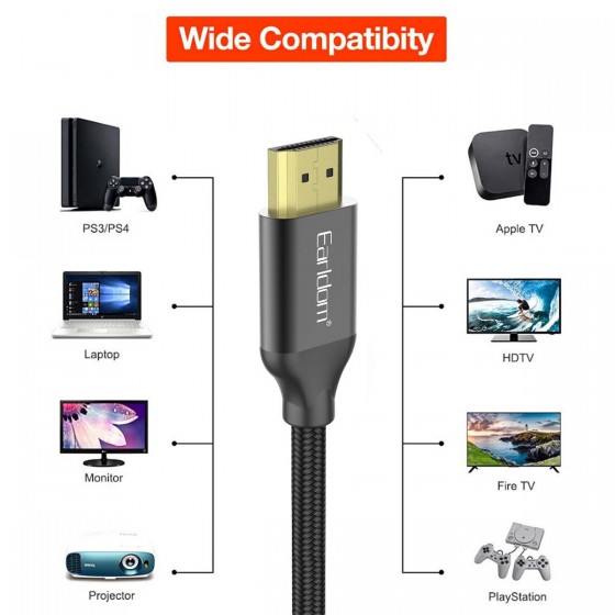Καλώδιο Earldom ET-W26 HDMI - HDMI, μήκους 5μ., 4K, πλεκτό, μαύρο