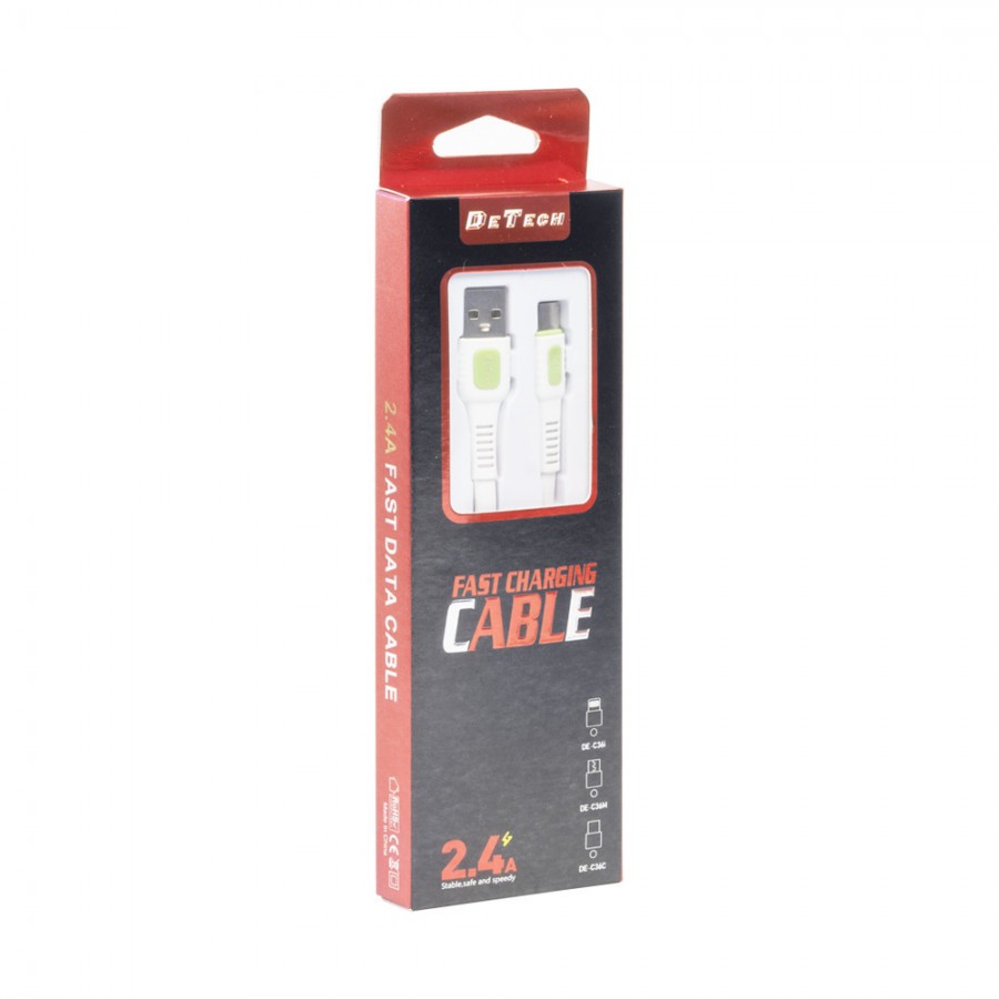 De Tech DE-C36C Flat USB 2.0 Cable USB-C male - USB-A male Λευκό 1m(40193)