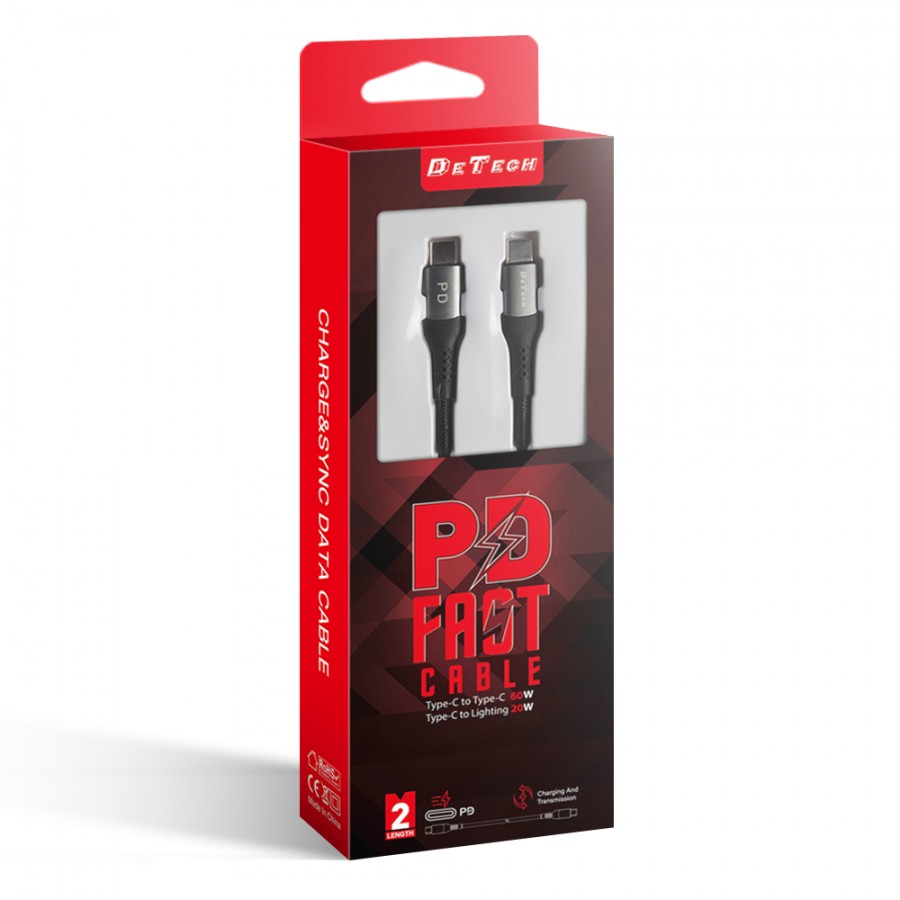 DETECH DE-43CC2 Braided USB 2.0 Cable USB-C male - USB-C 60W Μαύρο 2m (40265)