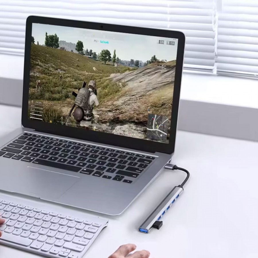 Το USB hub της εταιρείας De Tech διαθέτει 7 θύρες εξόδου USB 3.0, κατάλληλες για να συνδέσετε ταυτόχρονα στον υπολογιστή, συσκευές όπως ποντίκια, στικάκια, εξωτερικούς σκληρούς δίσκους, πληκτρολόγια και πολλά άλλα. Τροφοδοτείται μέσω του καλωδίου USB που συνδέεται στον υπολογιστή σας.